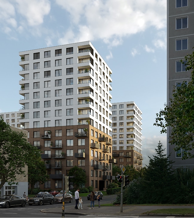The modern high-rise residence Sky Towers brings a new perspective of urban living. It offers airy and bright apartments for individuals, couples and families.